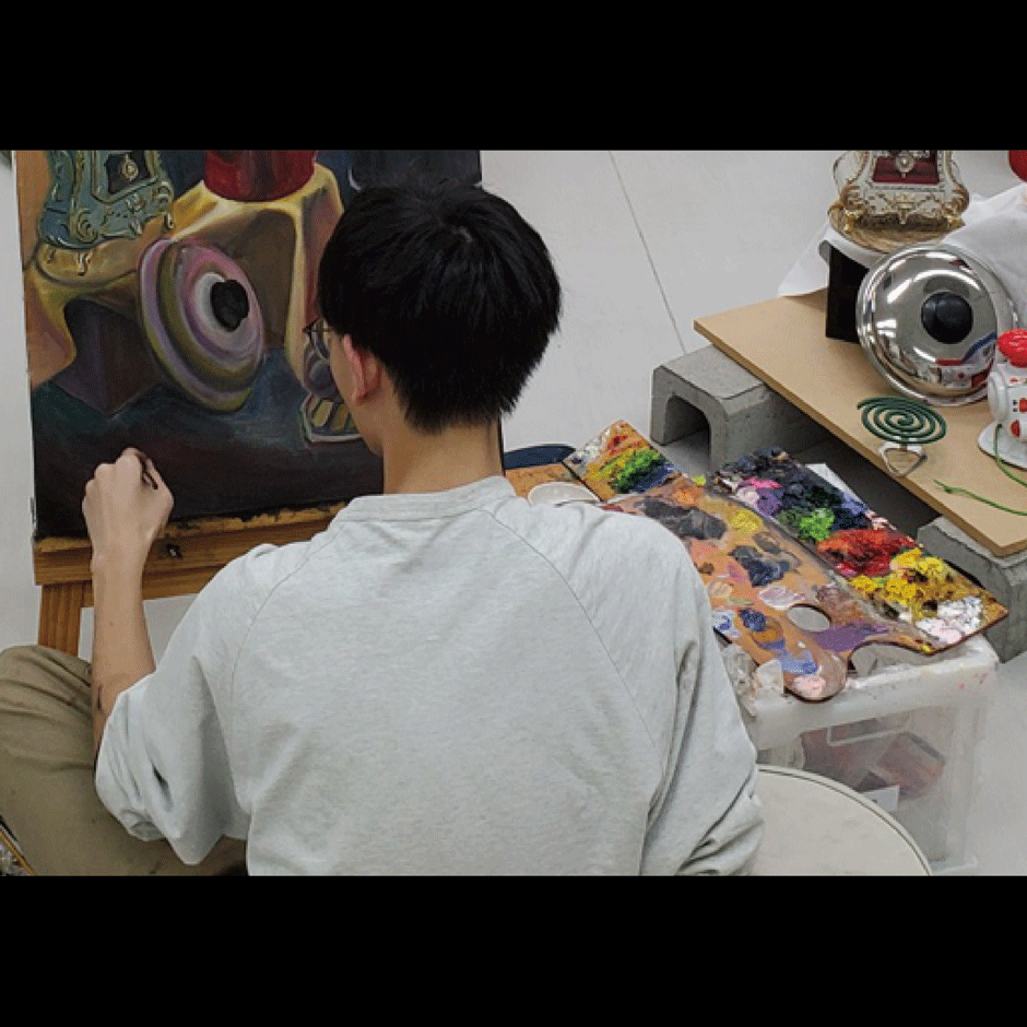 また、プレゼン面接については「社会問題の解決策」という例年のテーマに対し、事前に提案された問題が的中したことも大きな助けになりました。そして、必要以上に口を出さず、自分のペースで制作を進められ、困った時には的確なアドバイスをもらえる環境がありました。受験に向けて大切なのは、美術が好きという気持ちを忘れないことです。義務感で取り組むこともありますが、好きなものを描いたり、見たい映画を見たりすることで美術への愛を再確認できると思います。楽しみながら、自分らしさを大切に準備を進めてほしいです。